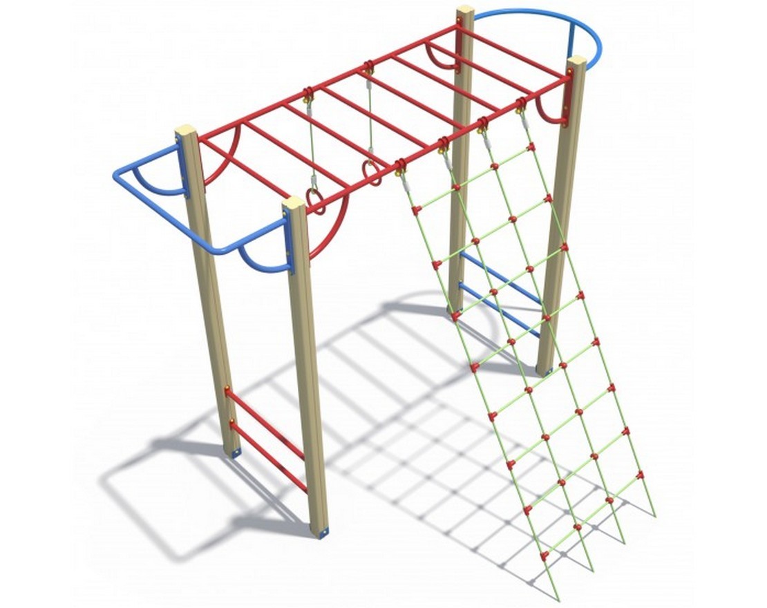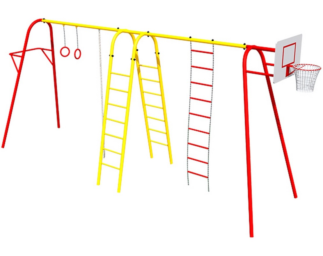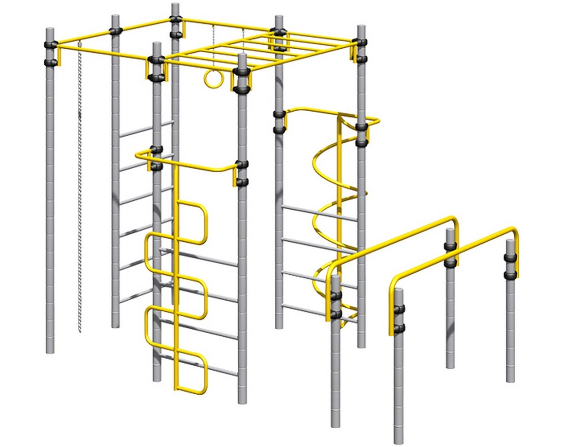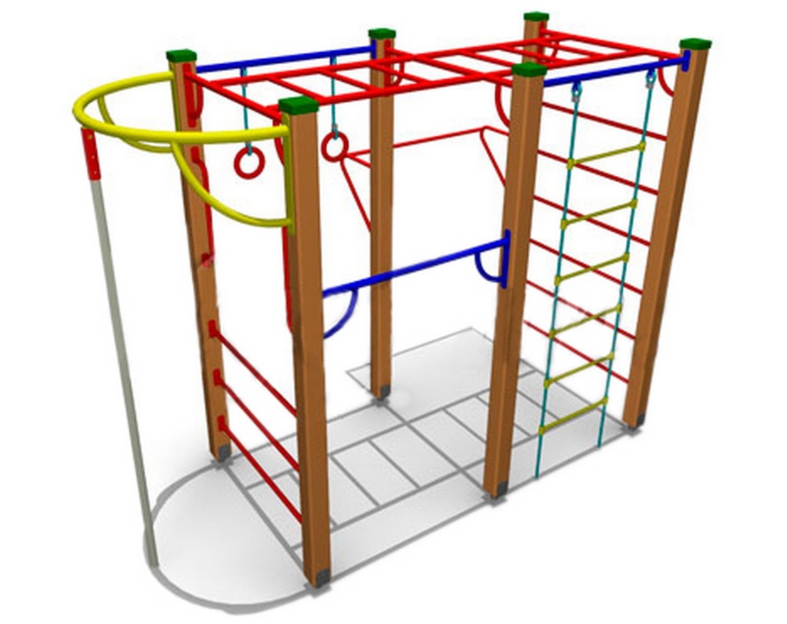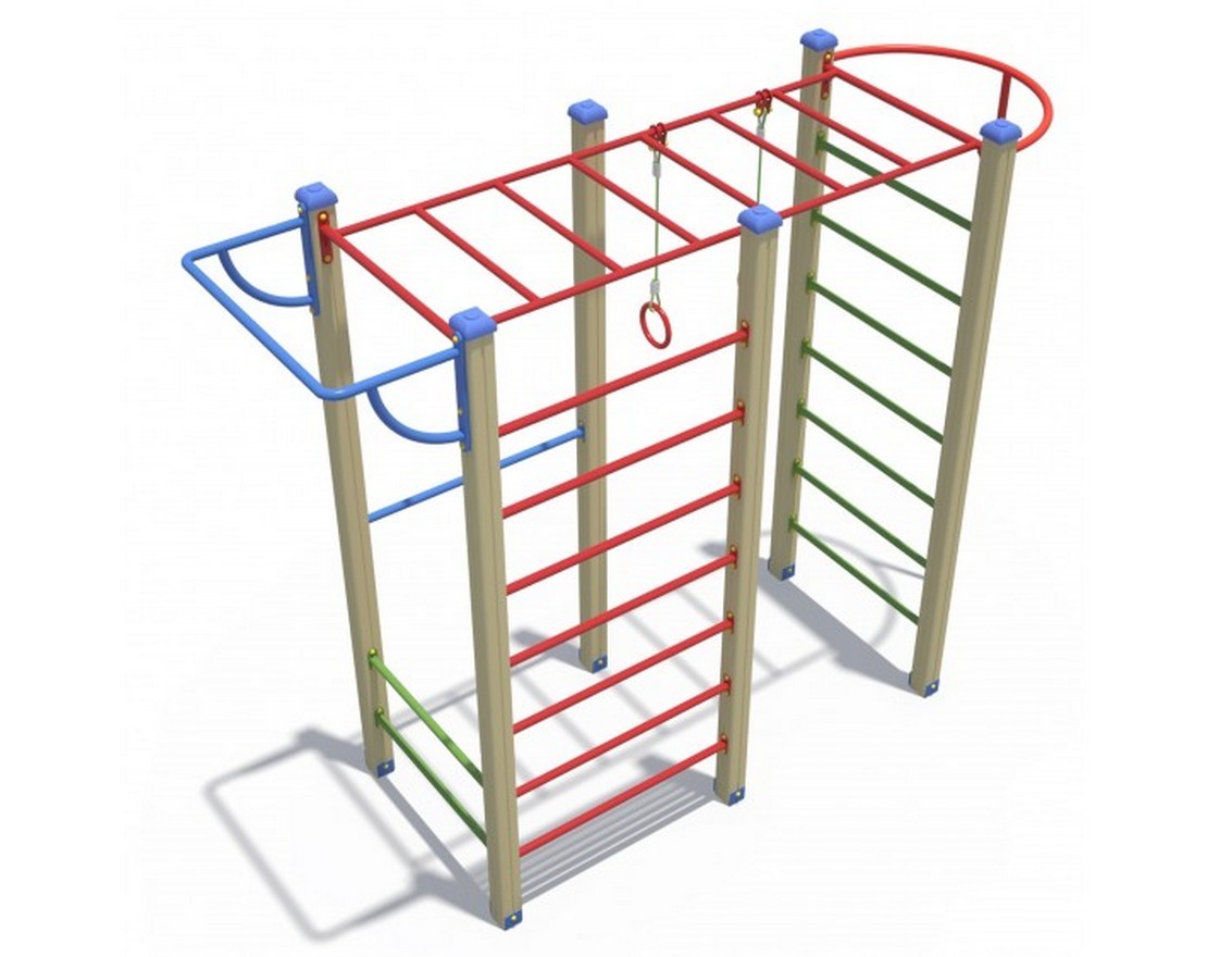Комплекс из 5-ти турников, шведской стенки и рукохода «Зигзаг»