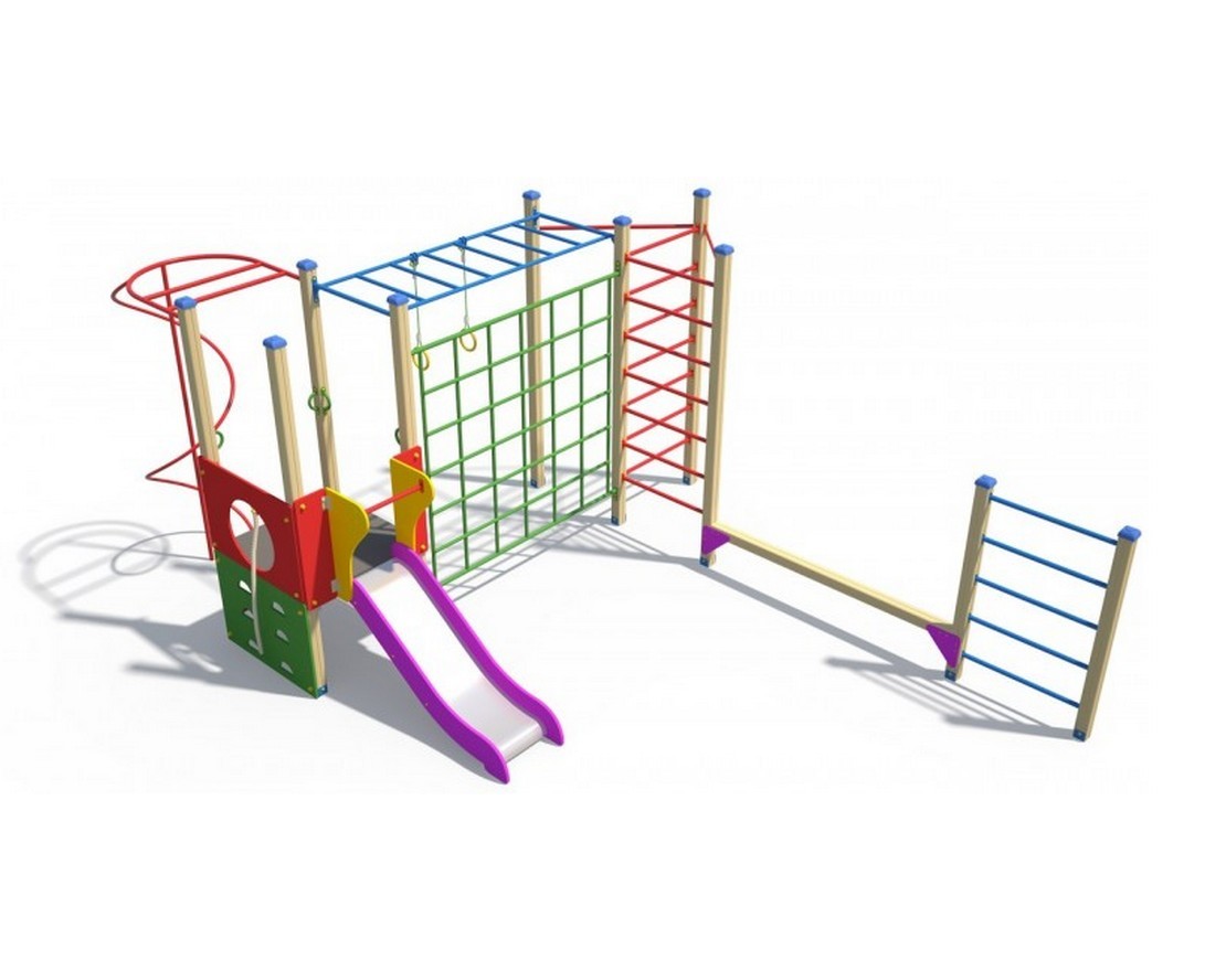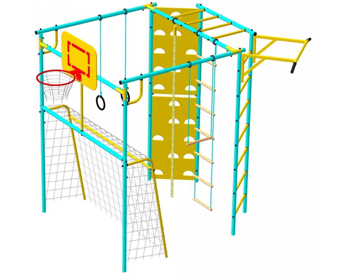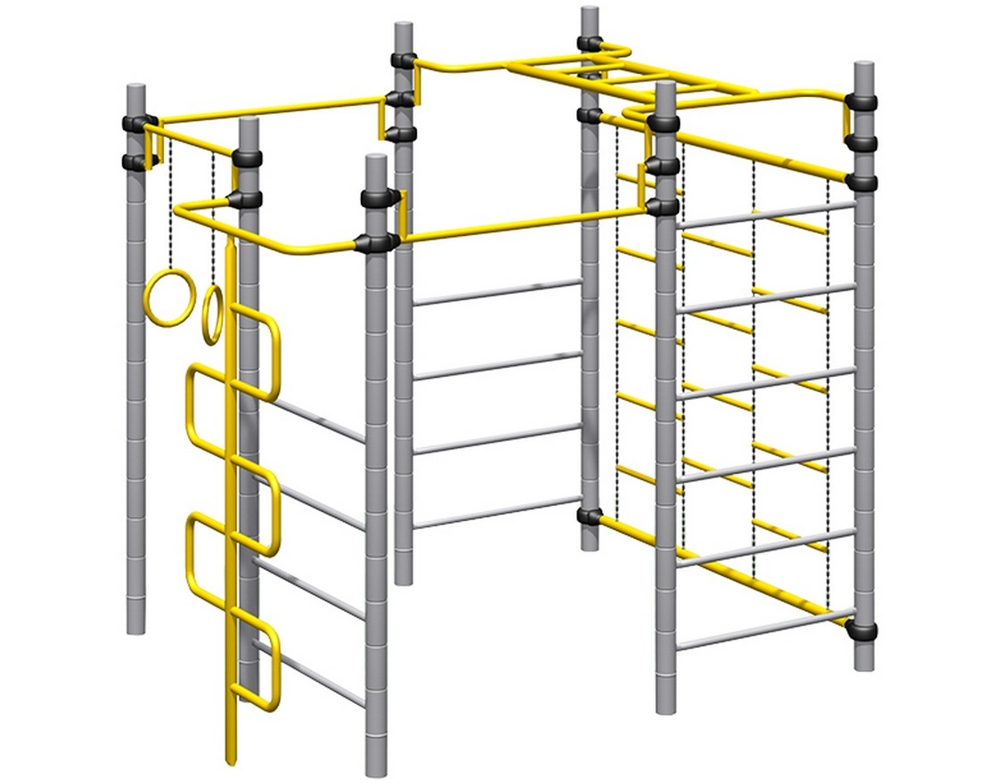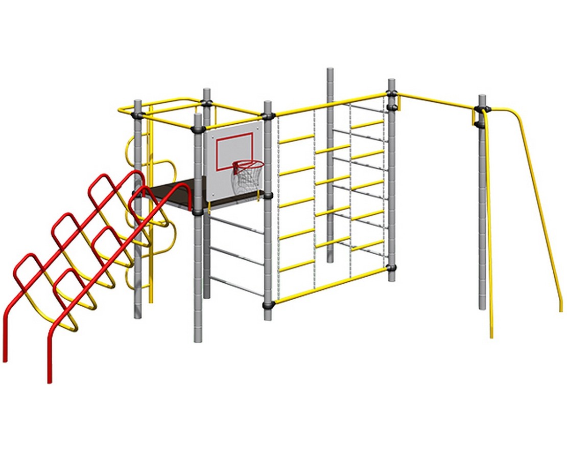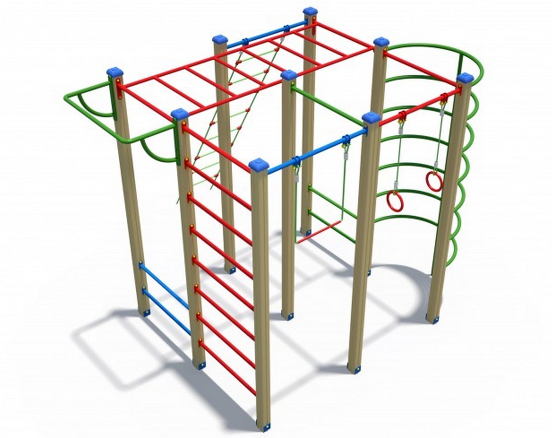 Комплекс из 5-ти турников, шведской стенки и рукохода «Зигзаг»