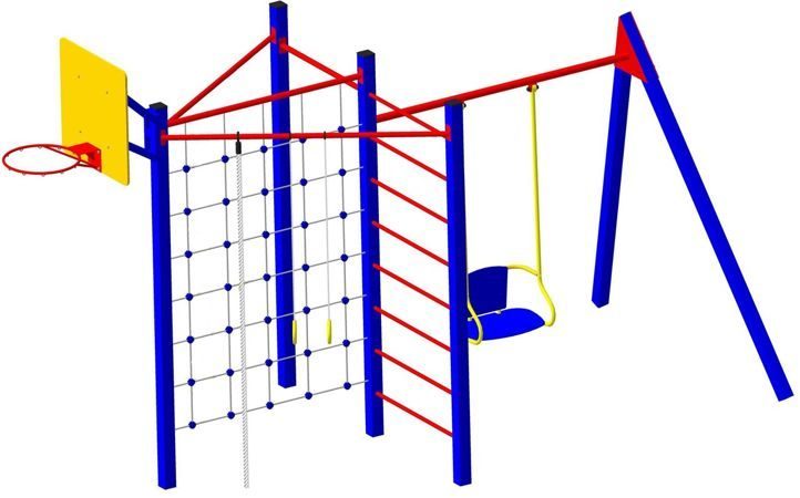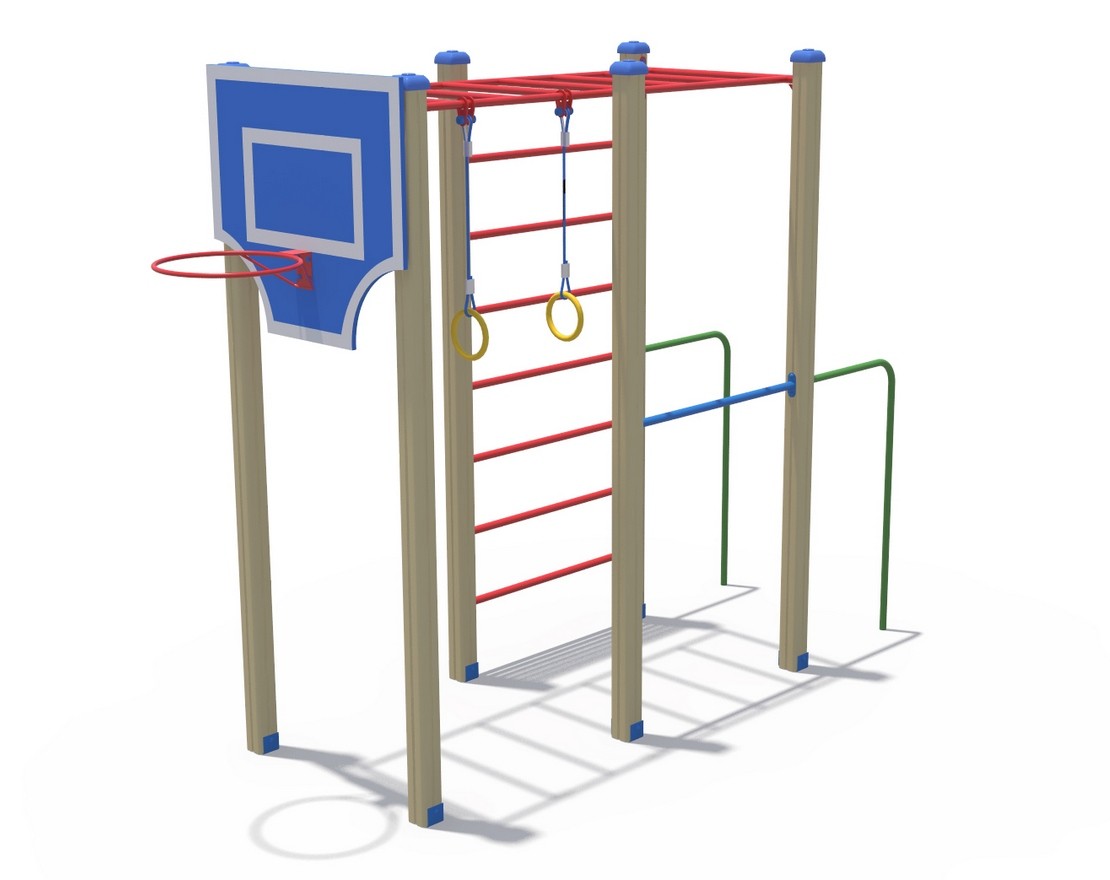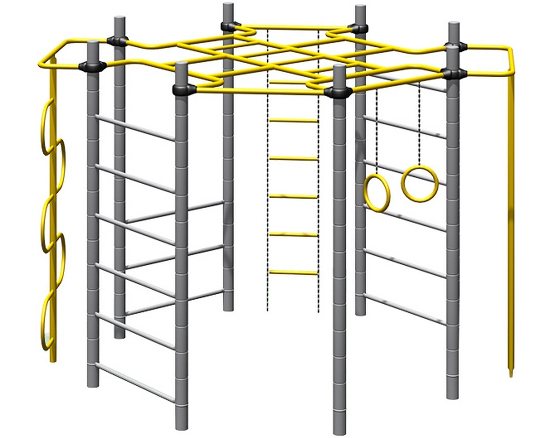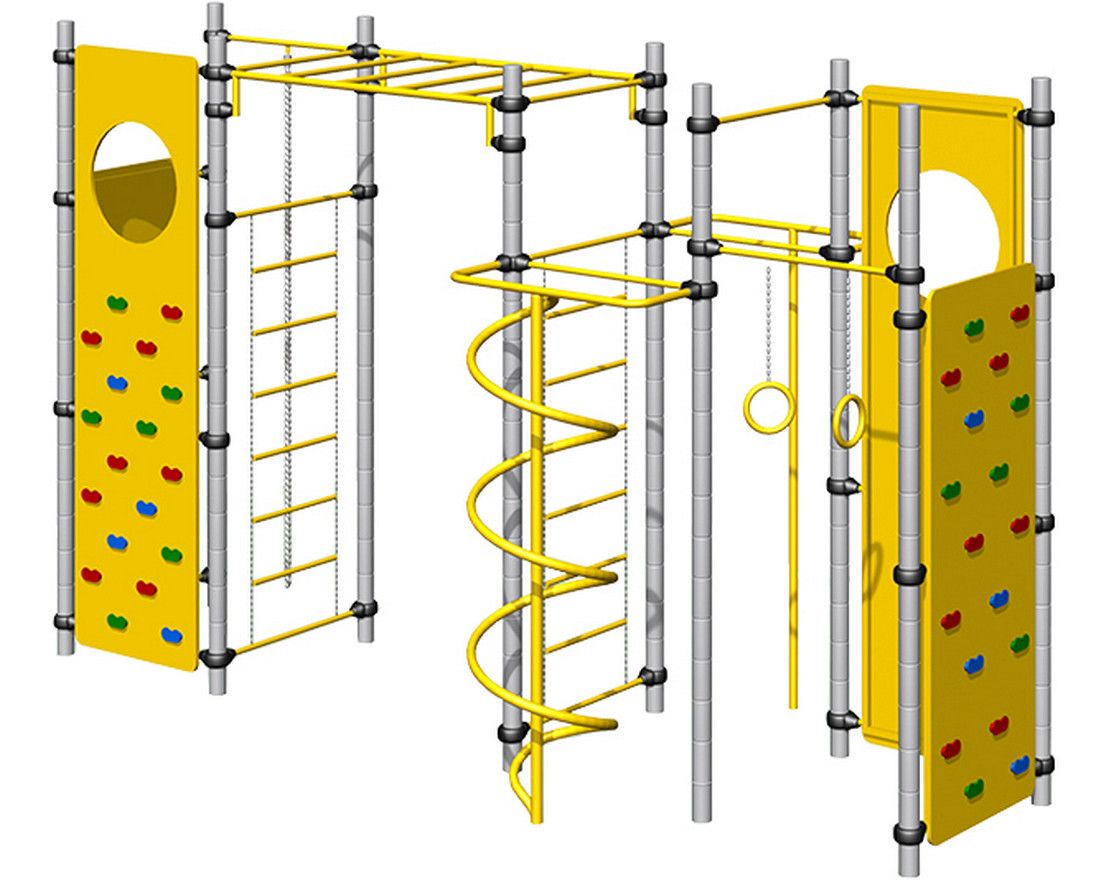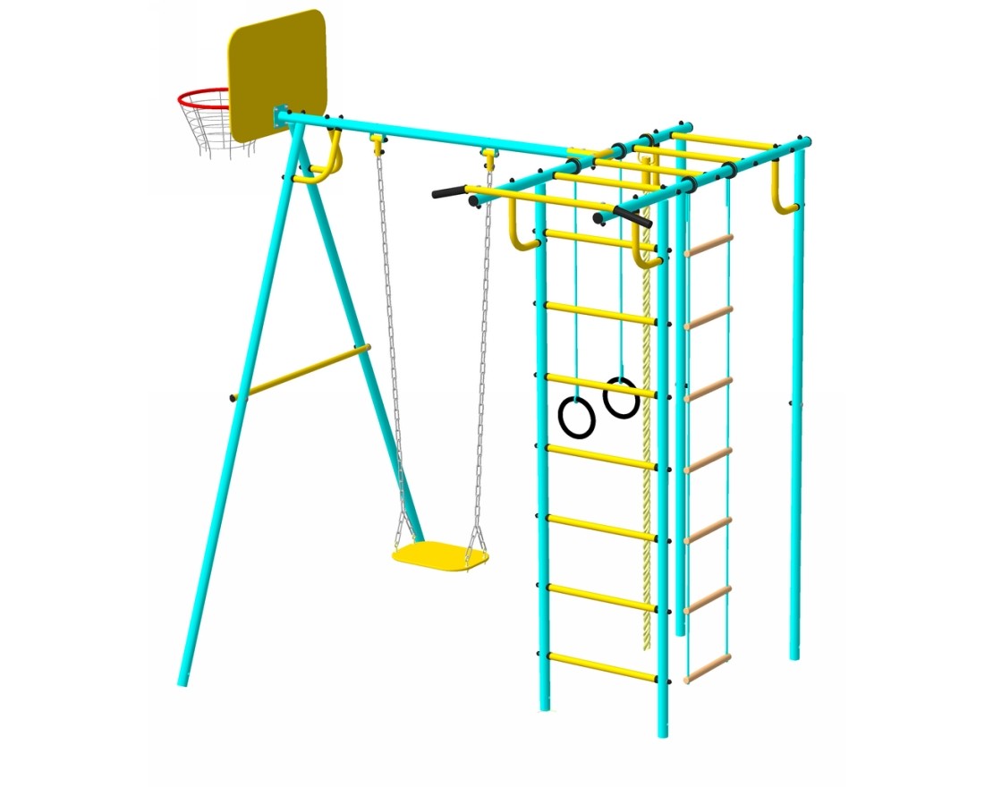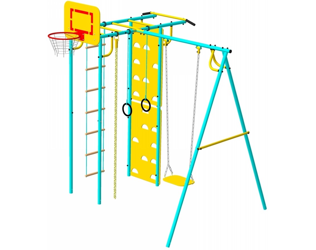 Комплекс из 5-ти турников, шведской стенки и рукохода «Зигзаг»
